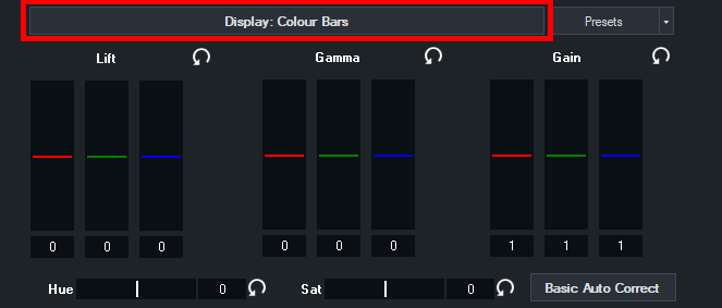 The Basic Auto Correct button will automatically adjust the Lift and Gain controls to their optimal levels.