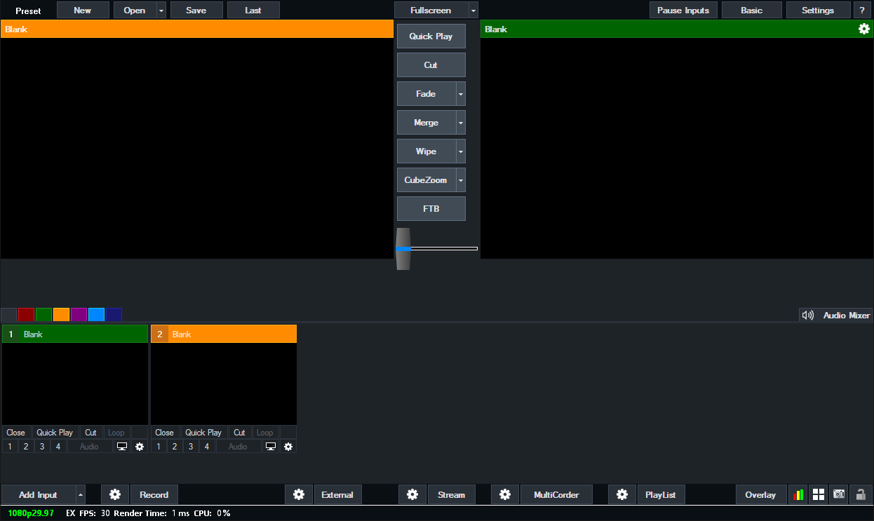 If you have used traditional video switchers before, the main window might look familiar.