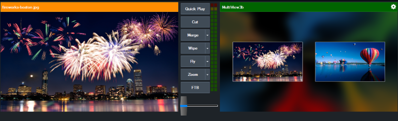 The Merge effect is a unique transition effect that seamlessly animates matching Inputs between Preview and Output.