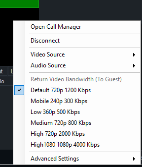 Manually select the maximum bandwidth the guest can use when sending video to vMix.