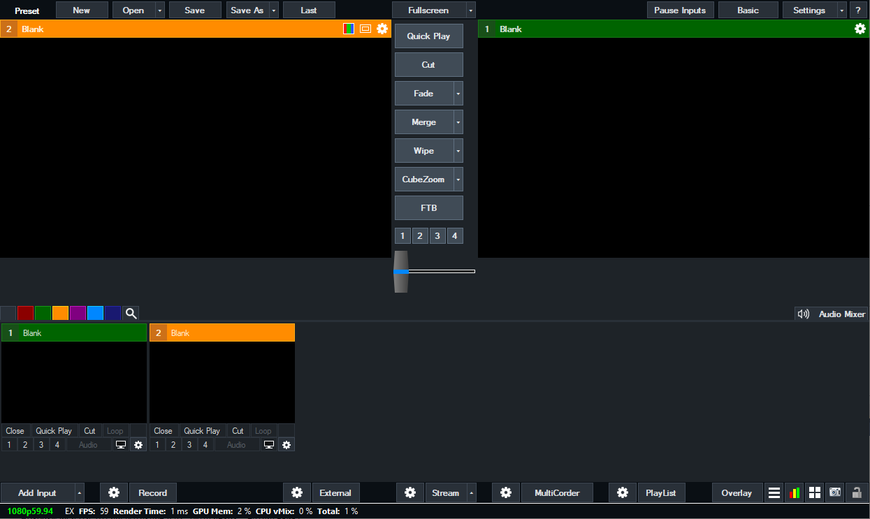 This main window is where all the video mixing takes place.