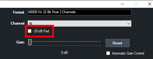 To fix this, in the Audio Settings window for the NDI input tick the -20dB Pad checkbox.
