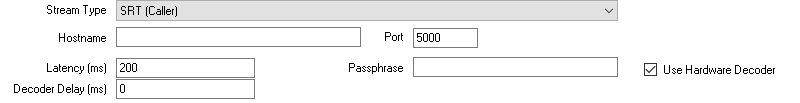 To connect to an SRT source, select the Stream / SRT option from the Add Input window and select either SRT (Caller), SRT (Listener) or SRT (Rendezvous) from the Stream Type dropdown.