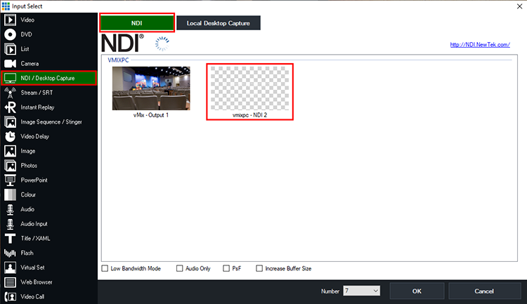 Once that is selected, you will see it show up down the bottom. Its name will be the computer name followed by - NDI 1 or 2 etc. Eg. yourpcname - NDI 1.