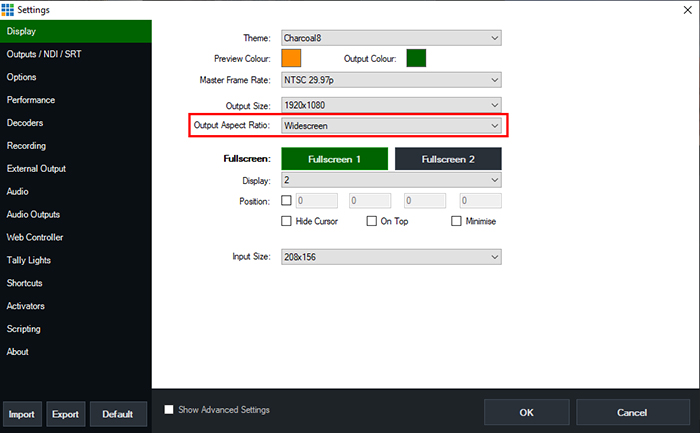 This means the vMix Output Aspect Ratio setting has been set to Normal (which is 4:3) instead of Widescreen (which is 16:9). To fix this, you need to adjust the vMix Output Aspect Ratio setting by doing the following: