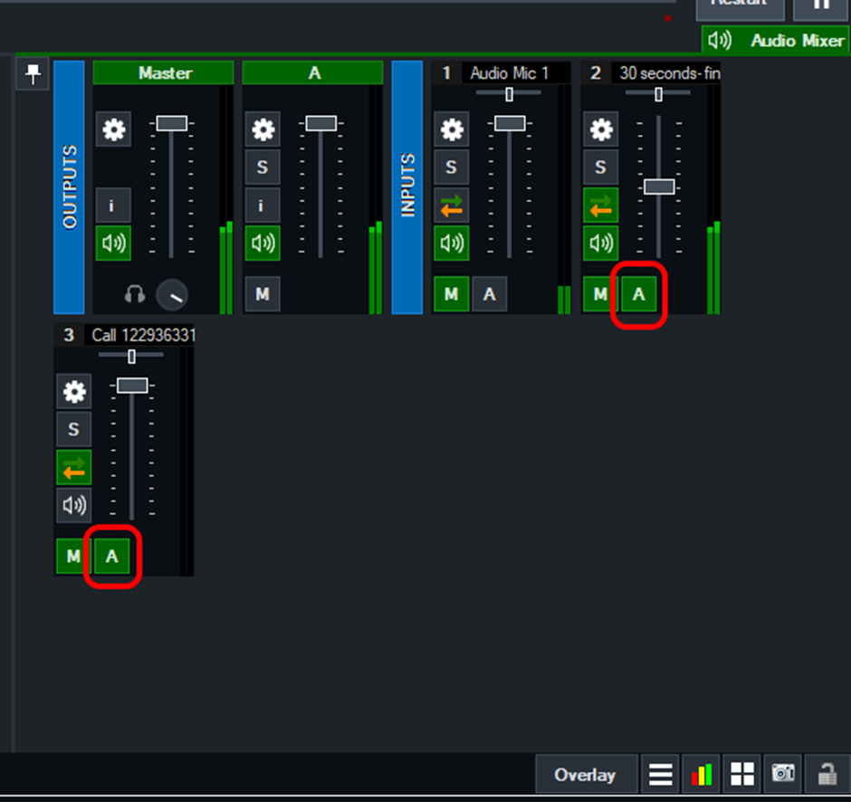 Now go to your Audio Mixer Inputs in vMix, and for those inputs that you would like audio to flow back to the RODECaster Pro II, add them to Bus A (or whatever bus you picked earlier).
