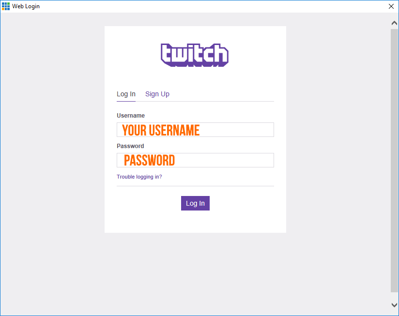 This will open up a window and you will need to enter your Twitch Username and Password.