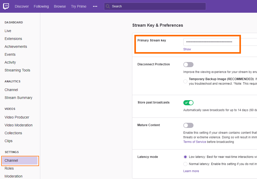 If you want to set up your Twitch stream manually, you just need to grab your Stream Key from your Twitch Account. Settings>Channel