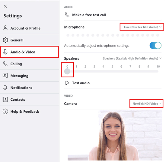Keeping the settings window open, next select the  Audio & Video tab. Then change the following settings: